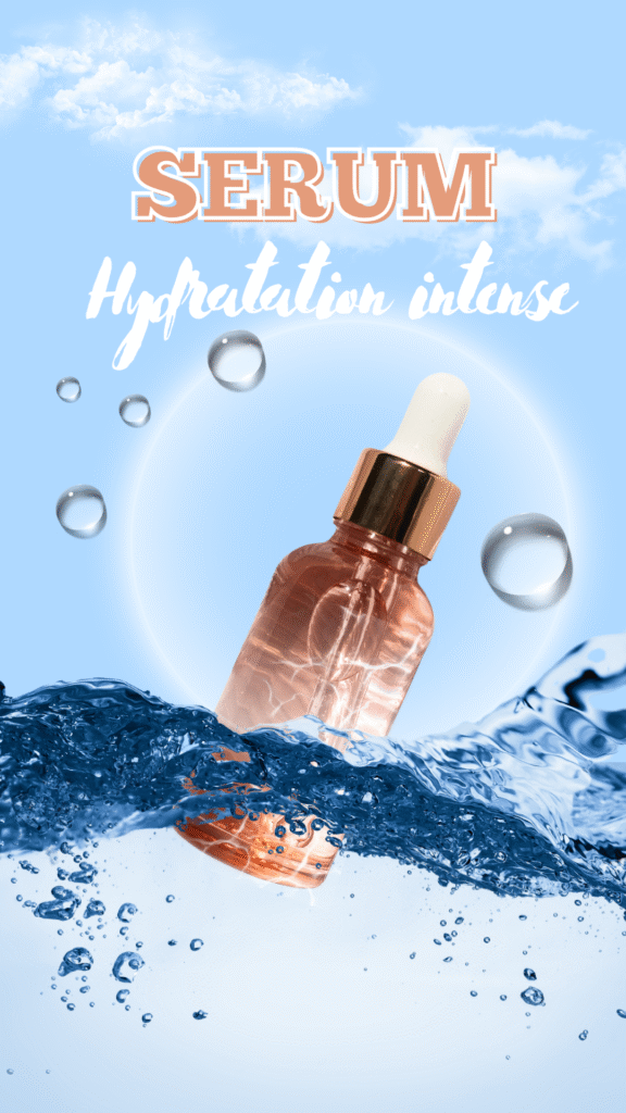 - Univers visuel : L’eau, les éclaboussures et les bulles évoquent la fraîcheur, la pureté et l’efficacité du produit, tout en renforçant la promesse d’hydratation intense.